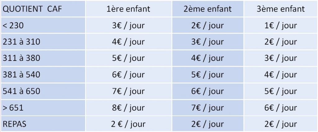 - Pendant les vacances scolaires (inscription à la semaine).