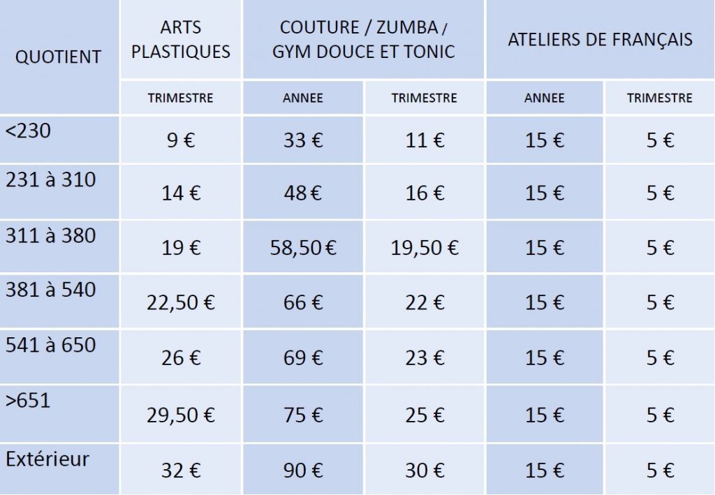 | Atelier d’alphabétisation | Mardi « niveau 1 » : 14h00 à 15h30 et 15h30 à 17h00 Lundi « niveau 2 » : 9h00 à 10h30 et 10h30 à 12h00 Jeudi « français langues étrangères » : 9h00 – 11h00 Lundi « Expression Orale » : 14h00 – 16h00 |
