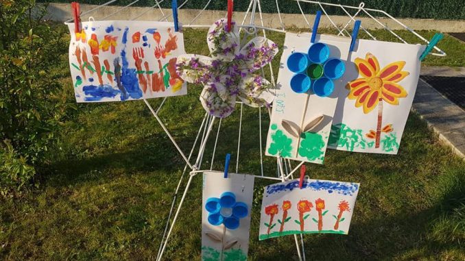 La grande lessive est un événement national qui consiste à créer ensemble des dessins, des peintures … et à les accrocher à l’aide de pinces à linge sur des étendages tendus dans des espaces publics ou privés.
