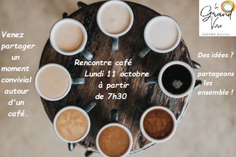 Rencontre café lundi 4 octobre 2021 Fatima AOUINE Non classé 0 Venez partager un moment convivial autour d’un café le lundi 11 octobre à partir de 7h30. 40 SHARES Facebook Tweeter Envoyer par mail