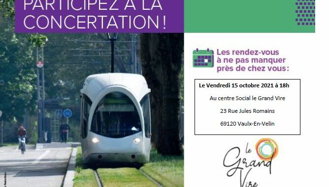 🚎🚎En 2026, la ligne de tramway T9 permettra de relier Vaulx-en-Velin/La Soie à Charpennes. T9 traversera Vaulx-en-Velin (La Soie, Quartier Est, Centre-Ville, Mas du Taureau) puis Villeurbanne (Saint-Jean, Les Buers/Croix-Luizet/La Doua)Le centre social le Grand Vire organise une rencontre pour échanger sur ce projet avec les habitant.es !