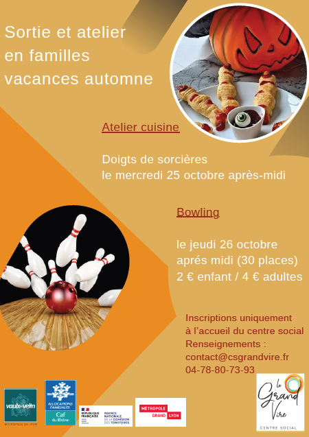 Venez participer à une sortie bowling et un atelier cuisine en famille, sur inscription à l’accueil du centre social.