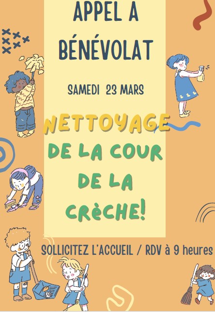 La cour de la crèche a besoin d’un petit coup de main pour retrouver sa propreté ! ![]()