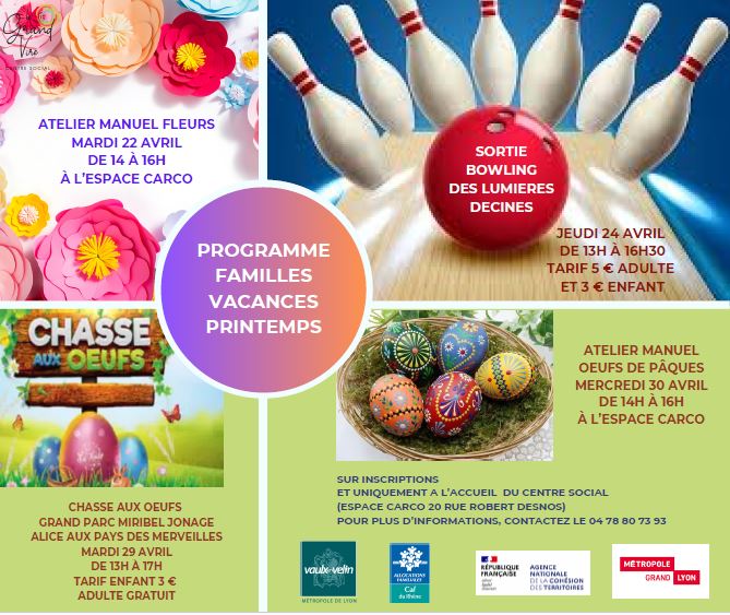 Renseignements au 04 78 80 73 93 et inscriptions à l’accueil du Centre Social !