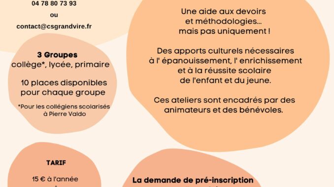 Ouverture des pré-inscriptions le lundi 08 septembre pour nos ateliers d’accompagnement à la scolarité pour l’année 2025-2026