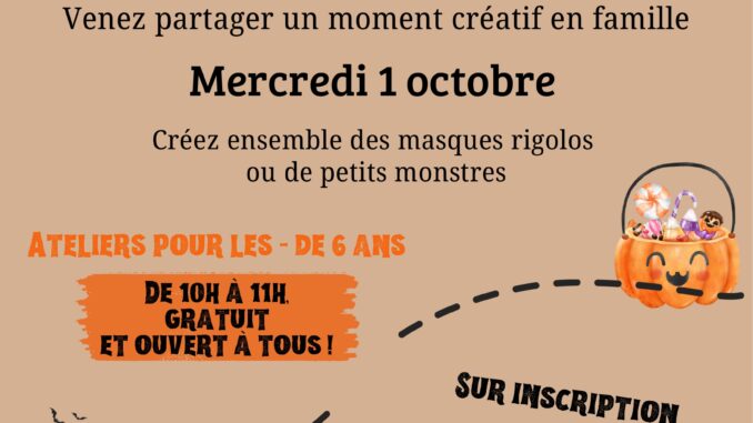 Cet atelier s’adresse aux enfants de moins de 6 ans, accompagnés de leurs parents. Ensemble, vous pourrez laisser libre cours à votre imagination en créant de drôles de masques ou de petits monstres rigolos spécialement pour Halloween.