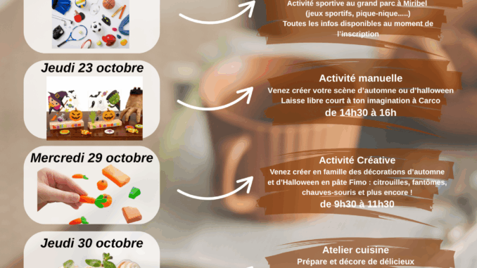 Les vacances d’automne arrivent et le Centre Social Le Grand Vire vous invite à partager des moments conviviaux et créatifs en famille ! Du 21 au 31 octobre, petits et grands pourront profiter d’activités variées, entre ateliers créatifs, sorties nature, activités culinaires et, bien sûr, la traditionnelle soirée Halloween.
