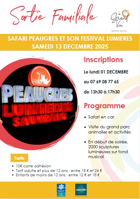 Le Centre Social Le Grand Vire vous propose une journée magique au Safari de Peaugres avec son incroyable Festival des Lumières Sauvages ![]()