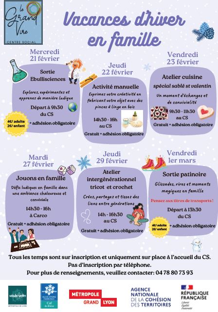 Tous les temps sont sur inscriptions, uniquement sur place à l’accueil du centre social. On vous attend nombreux ! 😉