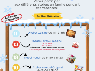 Pendant les vacances d’hiver, venez partager de beaux moments en famille à travers nos ateliers parents-enfants. Du 11 au 19 février, plusieurs activités vous attendent […]