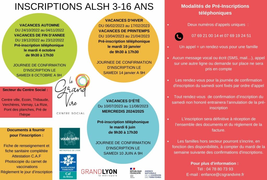 Vous souhaitez inscrire votre/vos enfant/s au sein de notre Accueil de Loisirs Sans Hébergement ?Voici toutes les modalités d’inscriptions !