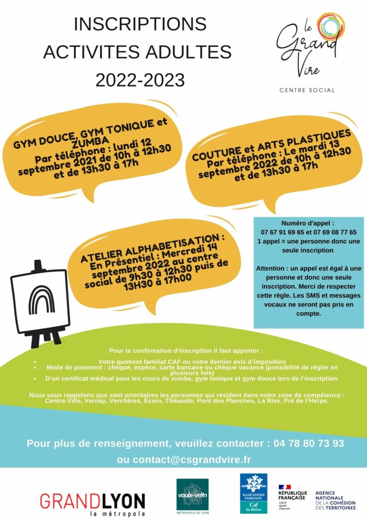 Les inscriptions pour les activités adultes de la saison 2022-2023 se dérouleront de la manière suivante :
