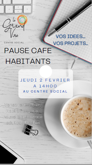 ☕ Venez rencontrer Nacira Bengoua le jeudi 02 février à partir de 14h, notre nouvelle animatrice adultes familles lors d’une pause café et échanger sur vos envies de sorties de proximité, d’ateliers….☕