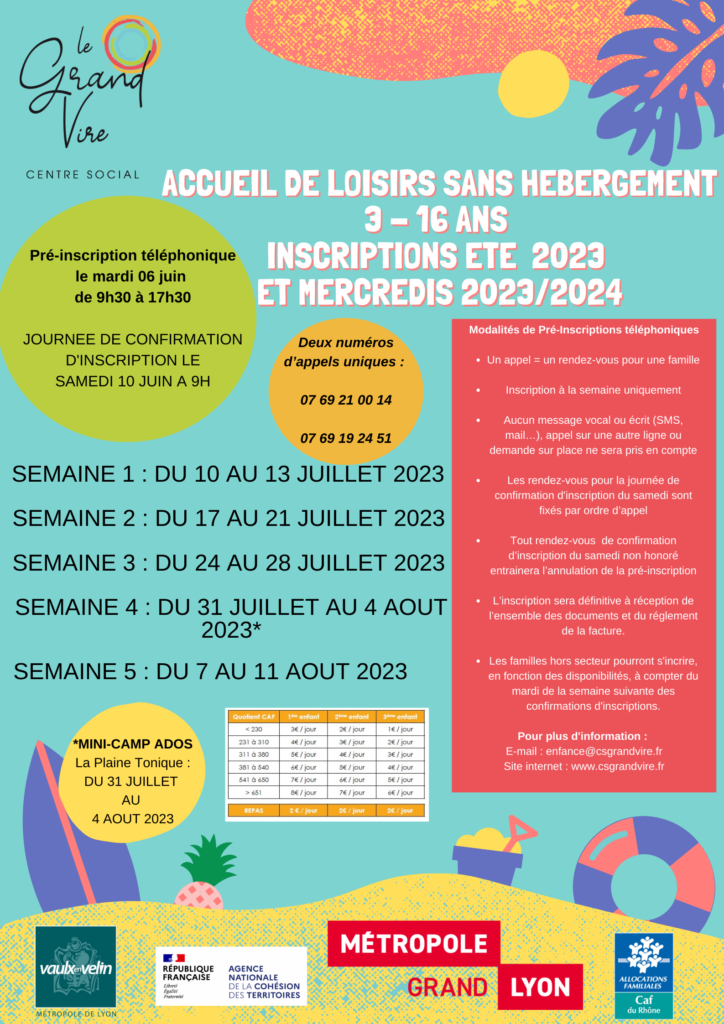 Pré-Inscription été 2023 et Mercredis 2023/2024 sur l’accueil de loisirs sans hébergement samedi 6 mai 2023 computeo Non classé 0 le 6 juin de 9h30 à 17h30 par téléphone ! Voici les modalités de pré-inscription 40 SHARES Facebook Tweeter Envoyer par mail