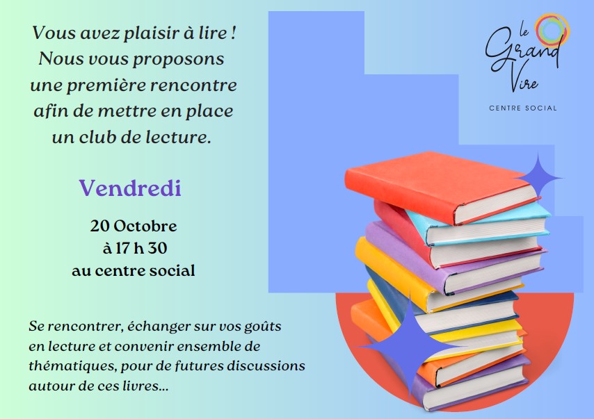 Notre bénévole Elodie vous propose de venir le vendredi 20 octobre pour une rencontre autour du plaisir de la lecture ![]()