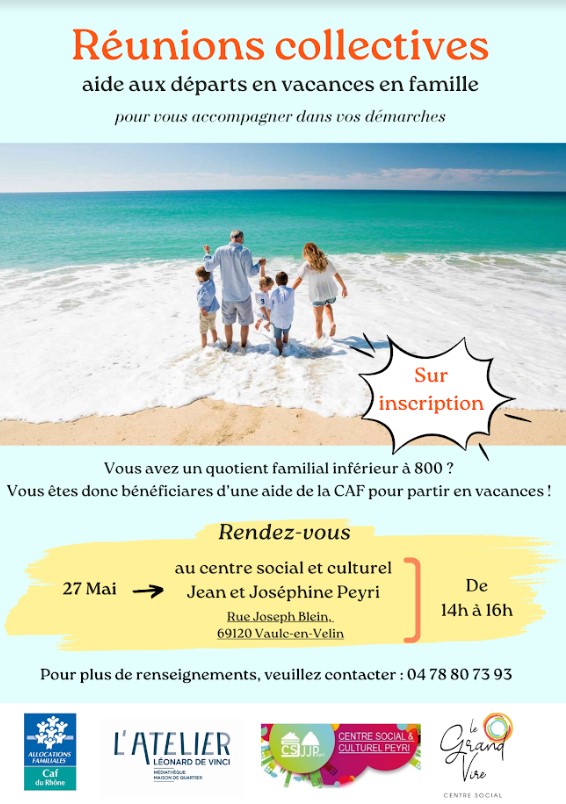 🌟🎉 Besoin d’un coup de pouce pour préparer vos prochaines vacances ? Rejoignez-nous pour une réunion collective au centre social J.J. Peyri le 23 mai de 14h à 16h ! 🏖️