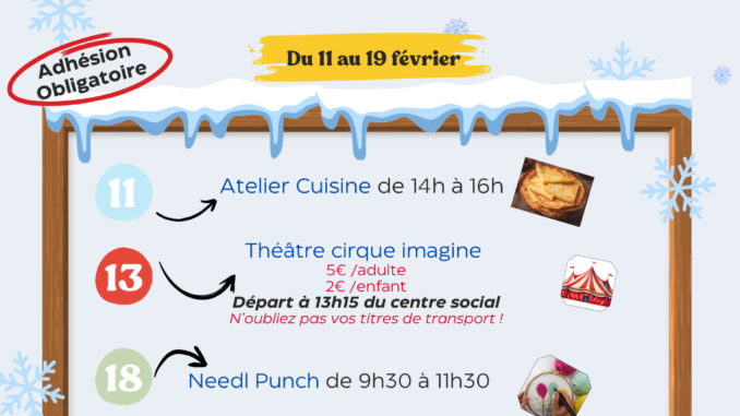 Du 11 au 19 février, plusieurs activités vous attendent :